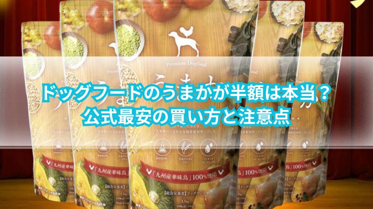 この記事では、ドッグフードうまかを半額で買える条件を軸に、うまか最安値、公式サイト価格、Amazon楽天比較、クーポン、定期購入、解約方法、店舗や市販の状況、Yahoo販売の注意点、転売品のリスク、成分や食いつきまで、あなたが購入前に知っておきたいポイントをまとめて整理します。
